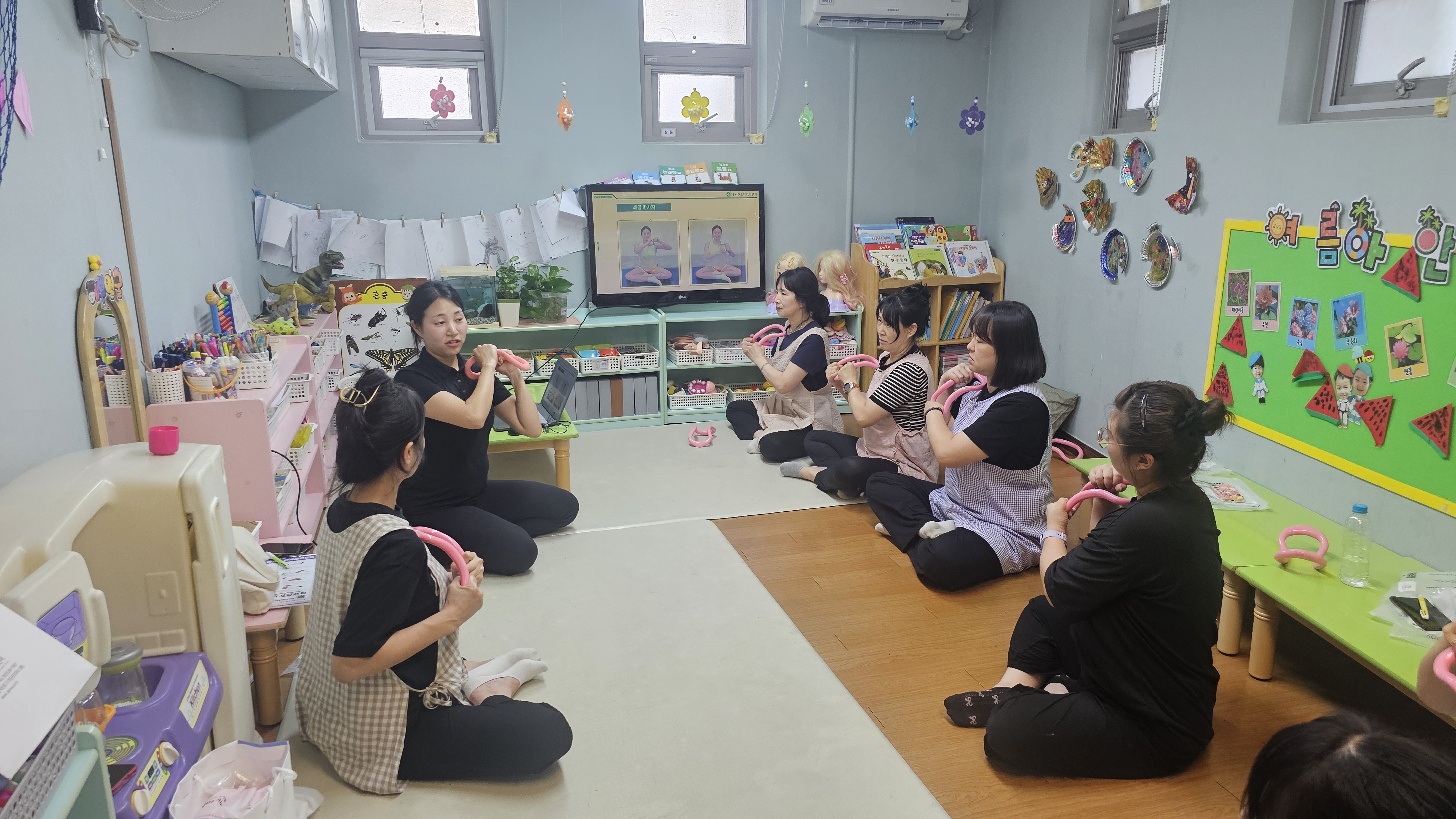 7월 22일(화) 오후 첫번째 사업장으로 울주군 범서읍 구영리 소재 ‘이레어린이집’ 돌봄노동자 10여명을 대상으로 울산근로자건강센터 물리치료사를 강사로 근