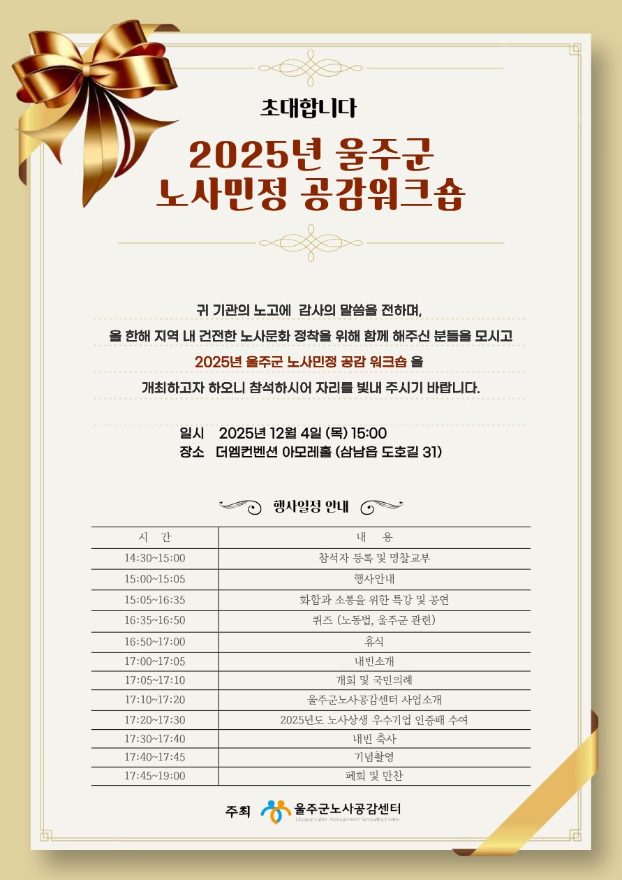 [울주군청]'임금체불 ZERO! 산업재해 ZERO 제3회 [근로기준법]개정설명회 개최 안내