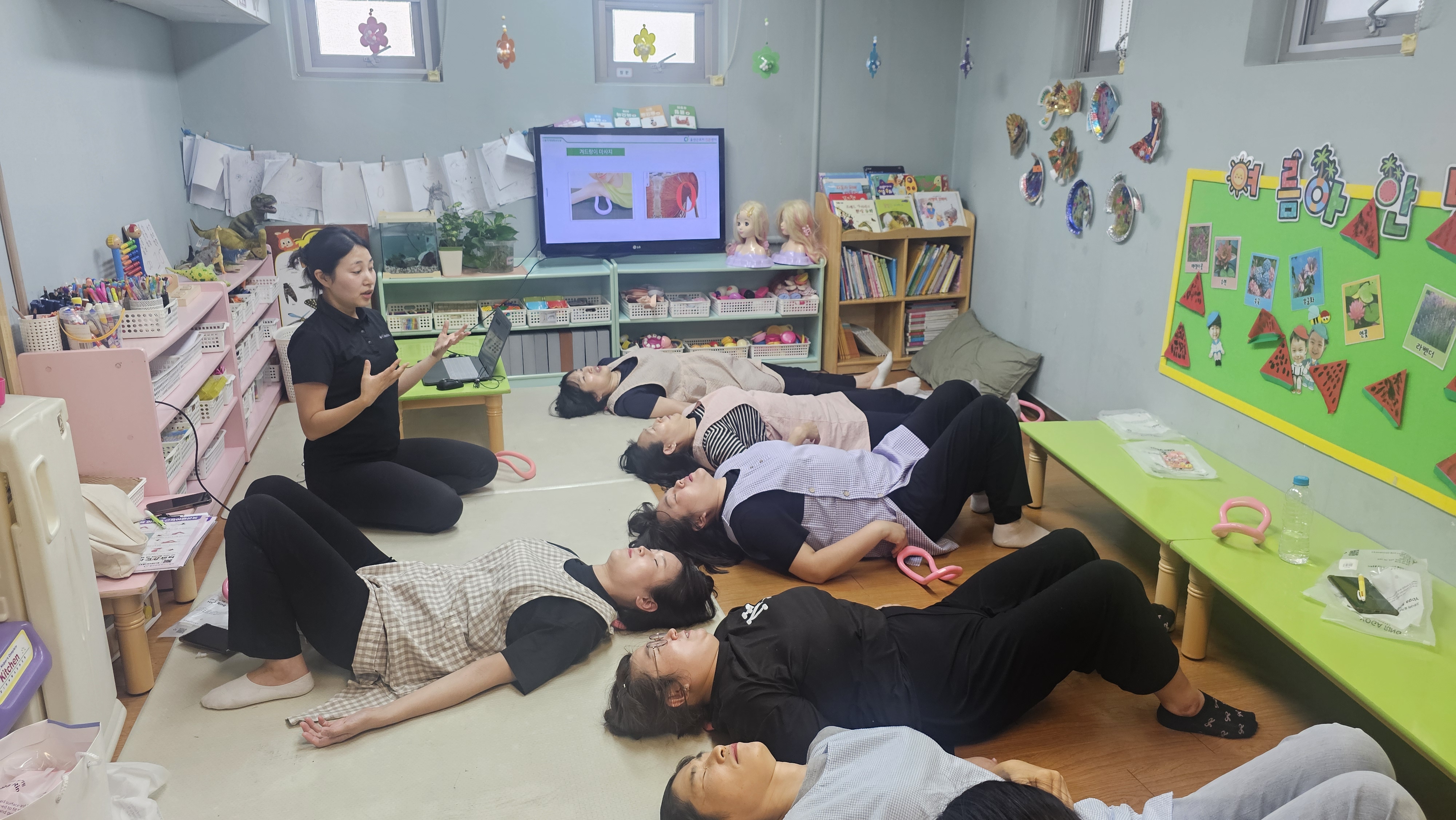7월 22일(화) 오후 첫번째 사업장으로 울주군 범서읍 구영리 소재 ‘이레어린이집’ 돌봄노동자 10여명을 대상으로 울산근로자건강센터 물리치료사를 강사로 근